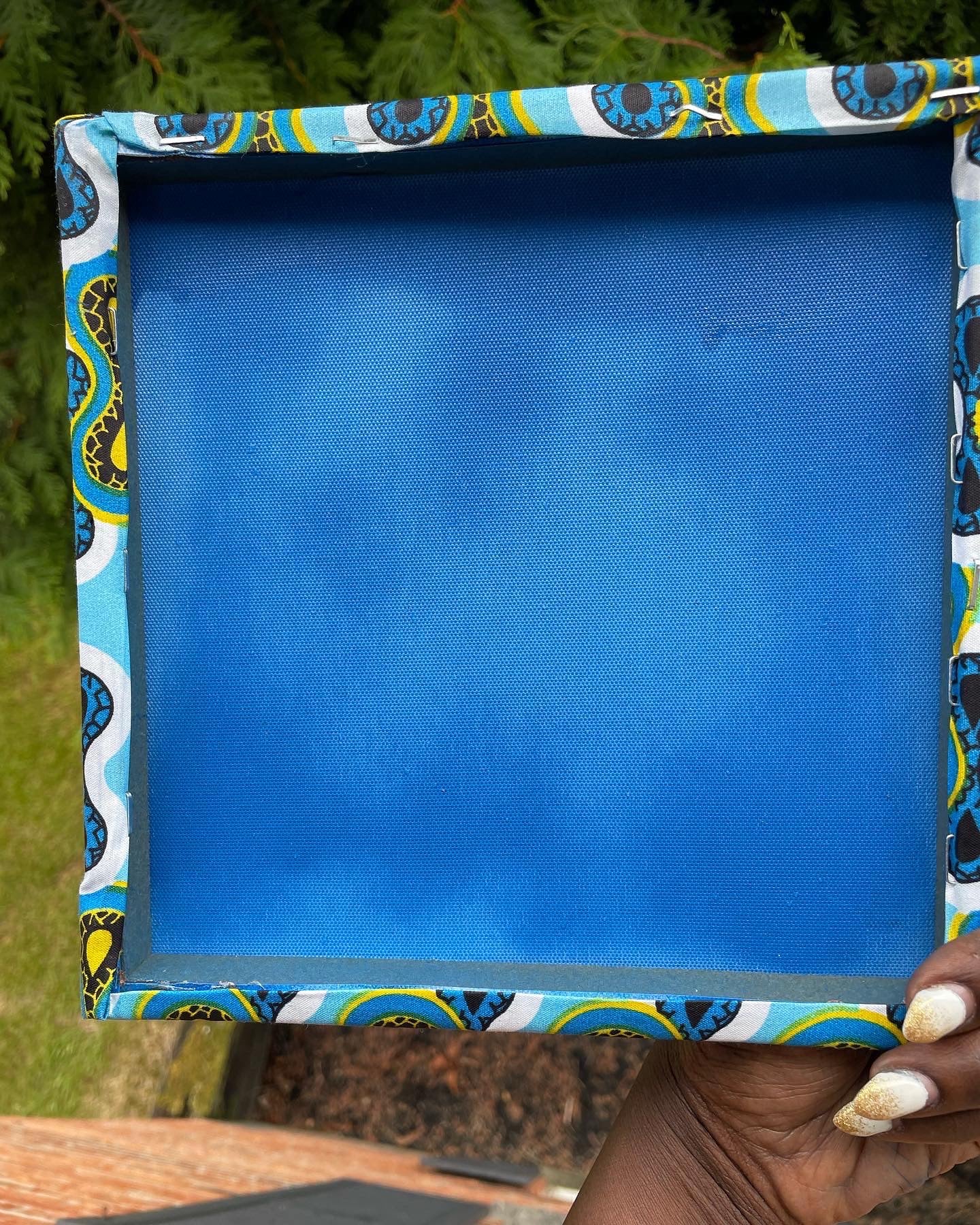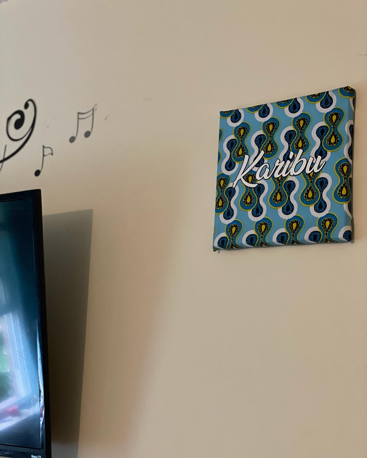 African Ankara Karibu (Welcome) Sign. Perfect for adding a little pop of color to your home, office, or anywhere else you would like. A wonderful authentic gift for someone special in your life. Handmade with authentic African Ankara fabric from Uganda. 8 1/2“ x 8 1/2“ x 1/2”