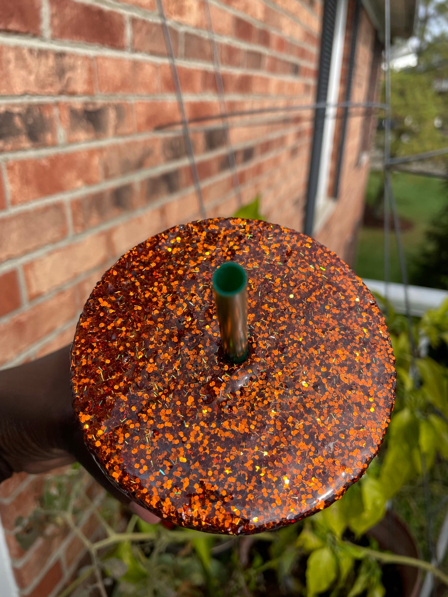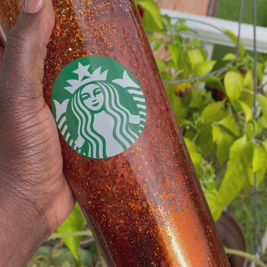 Fall/ Autumn Starbucks Venti Snow Globe Cold Cup Tumbler. Autumn copper and gold glitter w/Glitter Lid, and straw.