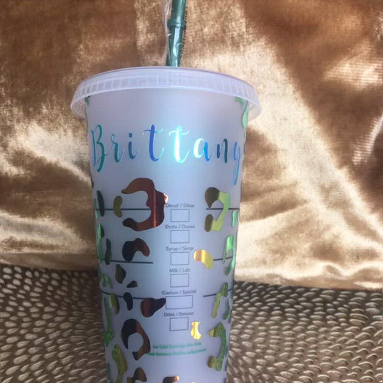 Leopard Holographic Print Cold Cup. Personalize it by adding your name.
