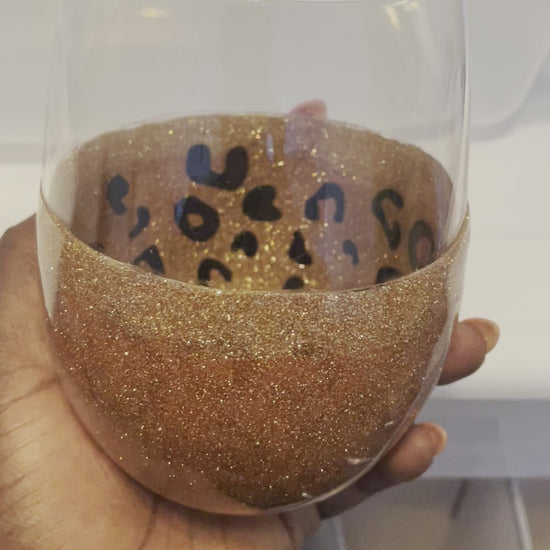Leopard Print Peek a Boo Gold Glitter Wine Glass