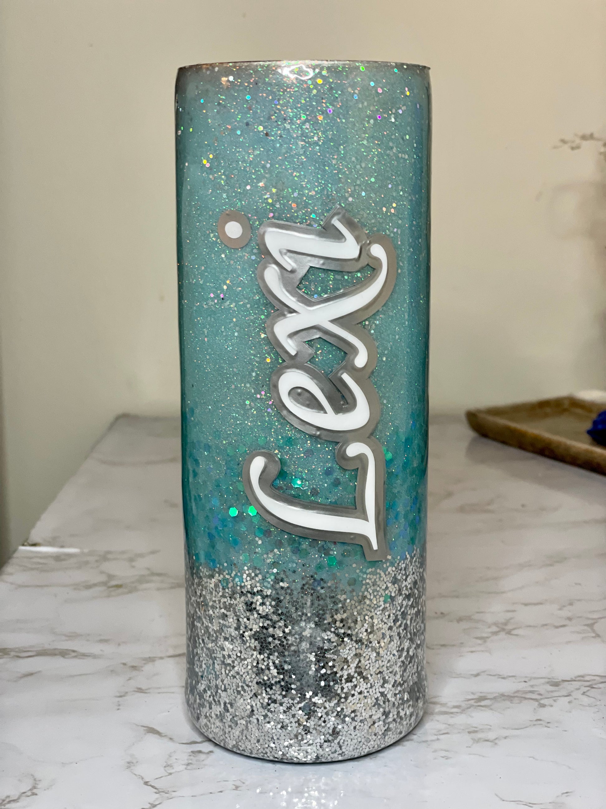 Tiffany Blue Top w/Silver Glittered Bottom Personalized Tumbler