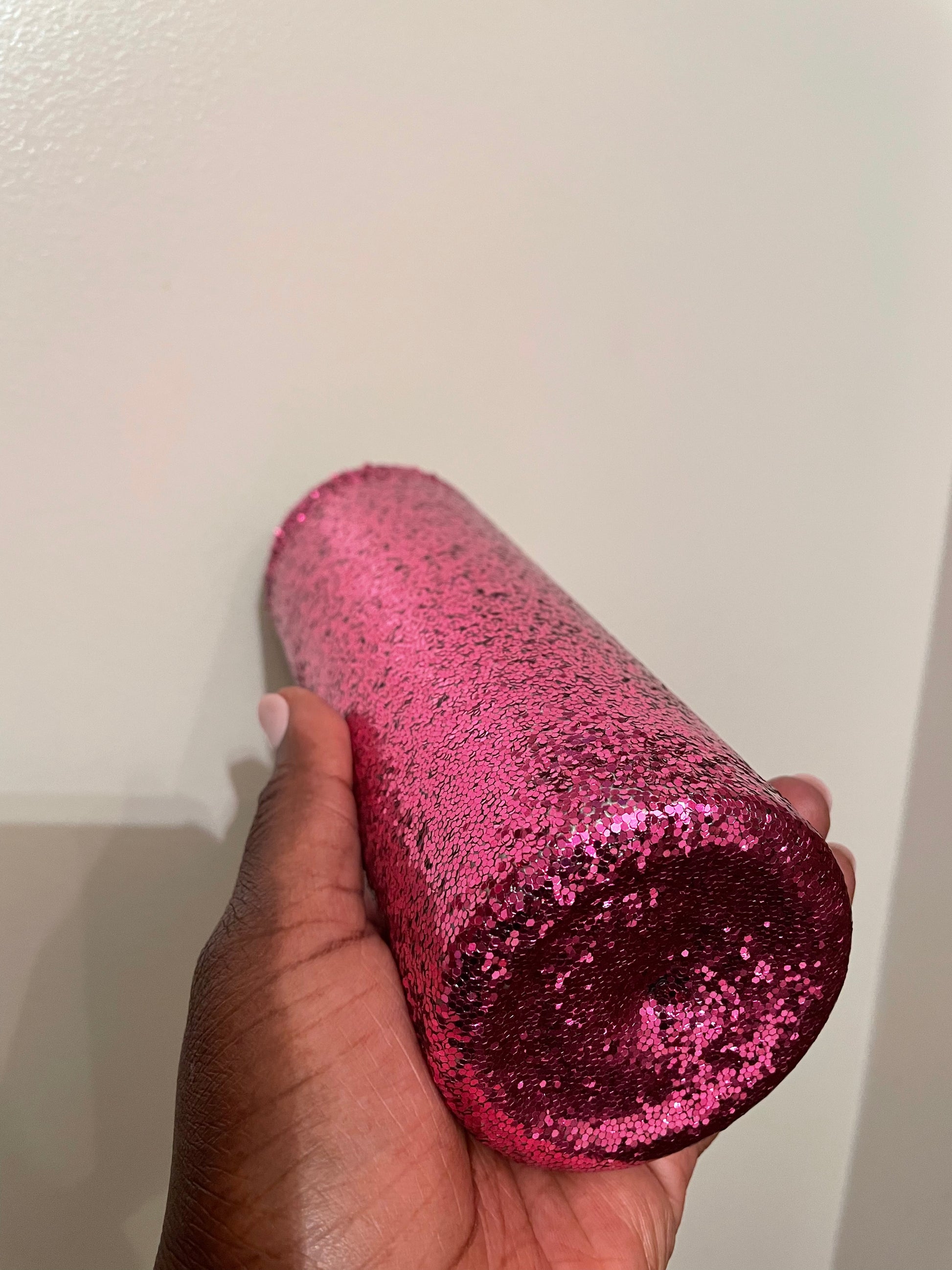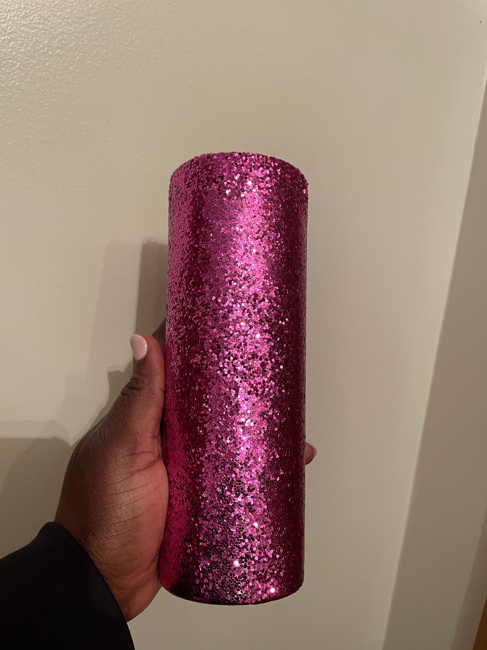 Pink Glittered 20 ounce Tumbler. Comes with reusable straw and straw cleaning brush. Personalize with your name.Double walls keep beverages hot for up to 6 hours and chilled for up to 12.